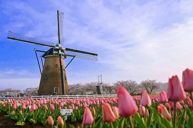 Hình ảnh cối xay gió và vườn hoa thay đổi theo mùa luôn làm du khách thích thú