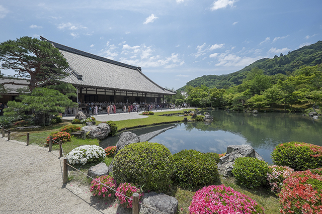 Đền Tenryu – ji là một trong 6 ngôi đền nổi tiếng ở Kyoto, nằm ở vùng ngoại ô phía tây của Kyoto. Những ngọn núi Arashiyama phía sau càng làm cho bối cảnh ngôi đền tuyệt vời. Bên cạnh đền là khu vườn tản bộ rất rộng và đẹp, khách tham quan được bán vé vào khu vườn và đền tùy chọn.