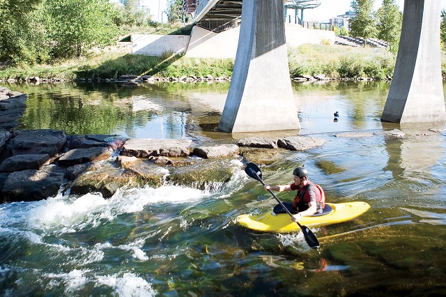 Chèo thuyền kayak tại công viên Confuence là trải nghiệm thú vị vào ngày nắng ở Denver