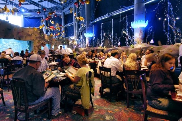 Tại Downtown Aquarium du khách còn được thưởng thức bữa ăn khi ngắm những chú cá bơi lội nữa đấy!