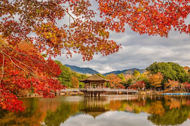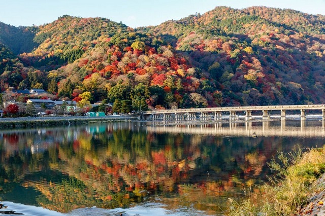 Cảnh thu nhìn từ cầu Togetsukyo sẽ khiến bạn khó có thể rời mắt