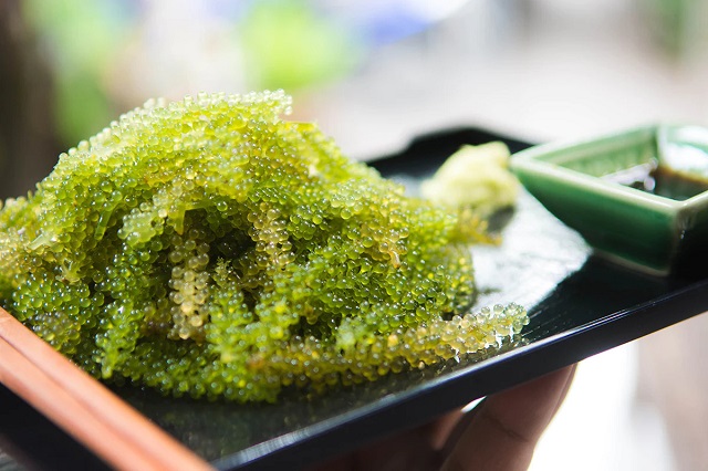Rong nho umibudo thường được ăn kèm với sashimi, có kết cấu giòn nhai đã miệng